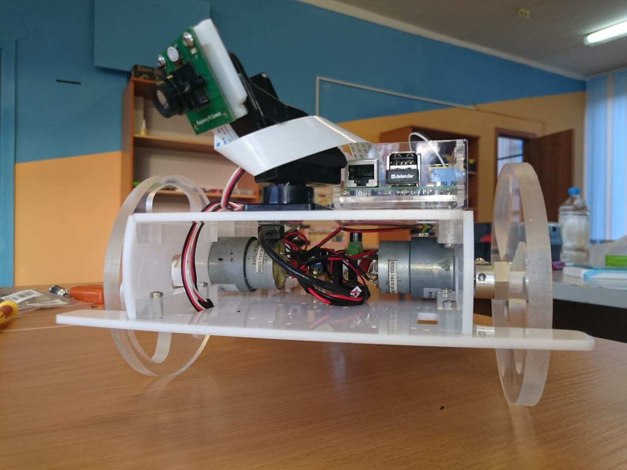 - RoboRover MV - Designed to test the educational value of machine vision for young learners, this project used a Raspberry Pi to process camera input and a micro:bit to control the robot. To test the idea I've built 12 robots and organized a competition. Each Raspberry Pi Zero, equipped with a camera, ran a pre-programmed sign detection algorithm based on OpenCV, sending data to the micro:bit. The immediate sensor-to-action loop helped students grasp perception, decision, and actuation—core ideas behind modern robotics.