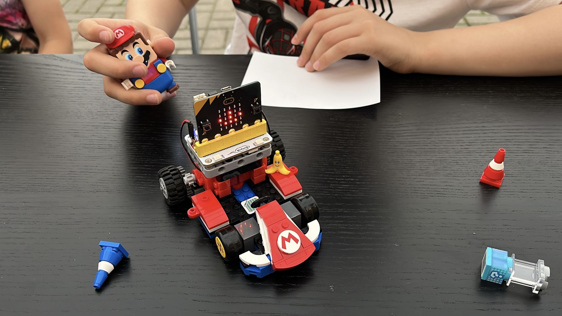 Created an open-source Github project to turn 72043 set into an interactive RC kart. Wrote a Python script that reads IMU data from the Mario figure and streams throttle and steering data over Bluetooth to a BBC micro:bit to drive kart using Geekservos. Full guide on Hackster