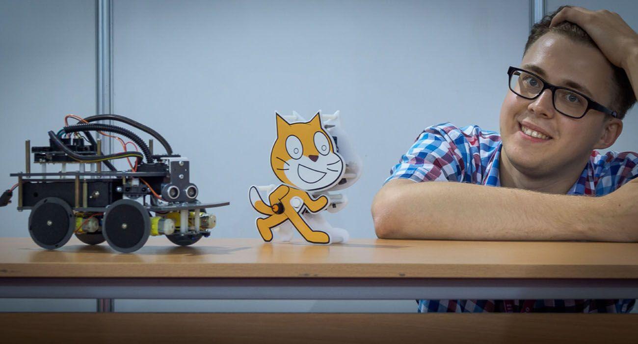 - RobotCat – a Scratch-programmable robotic toy based on Arduino. Developed a graphical Blockly-style software for programming it called RoverBlock.